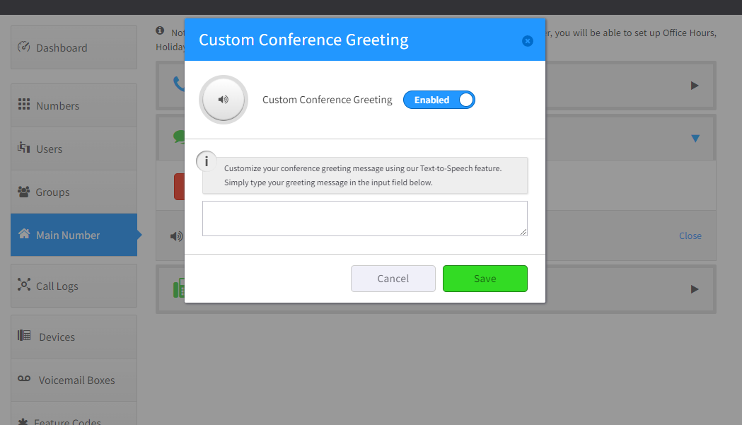 btracht: I see 3 options there for the main conference number: 1) Existing media. 2) New/upload media. 3) TTS.